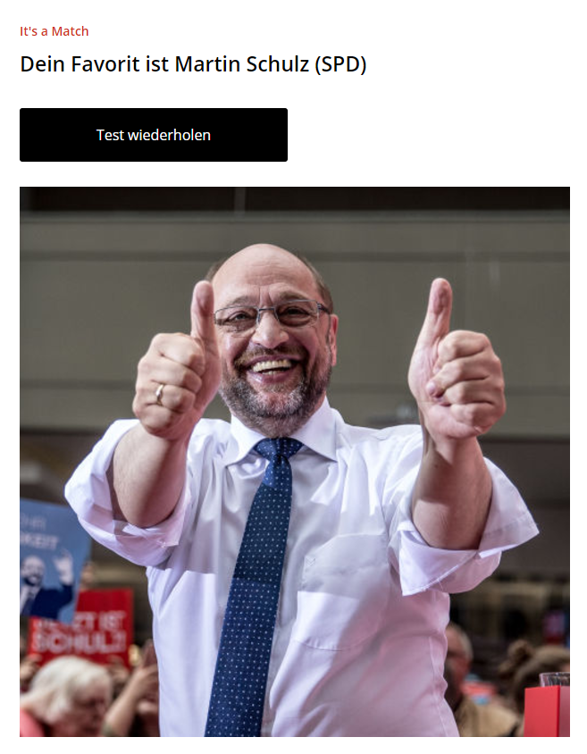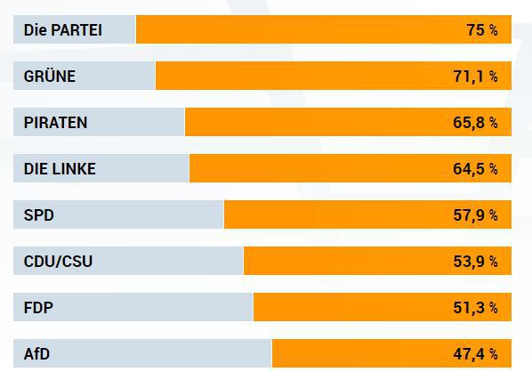 Die Partei hat es bei mir auch auf Platz 2 geschafft und ich hadere mit mir, ob ich die Empfehlung nicht auch einfach mal befolgen soll. :D