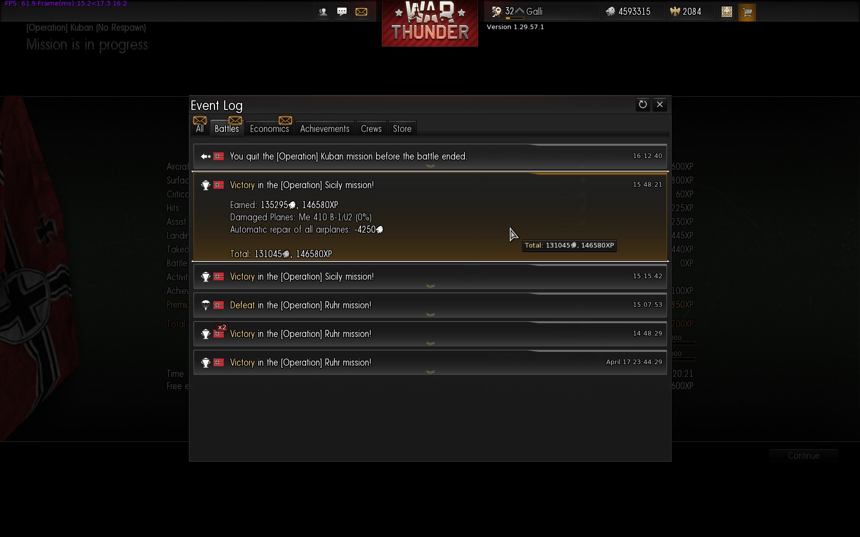 Mir gings überhaupt nicht um die Kohle sondern in erster Linie bei den Japanern wieder voranzukommen sprich etwas XP zu kriegen und das schaff ich nur wenn ich überhaupt mal nen paar abschieße noch dazu würde ich nicht unbedingt sagen das die Fw190 A-5 gegen jeglichen Gegner dort Uber ist, auf extrem nahe kurvenkämpfe mit Corsairs brauch ich mich nicht einlassen hab ich gelernt und gegen Kingcobras und Mustangs zu spielen ist ebenso unlustig, ganz geschweige denn ne B17 runterzuholen was die manchmal an Munition fressen dann kann man danach direkt wieder zum Träger fliegen sollte man ihr megakrasses abwehrfeuer überlebt haben was nicht so häufig vorkommt.