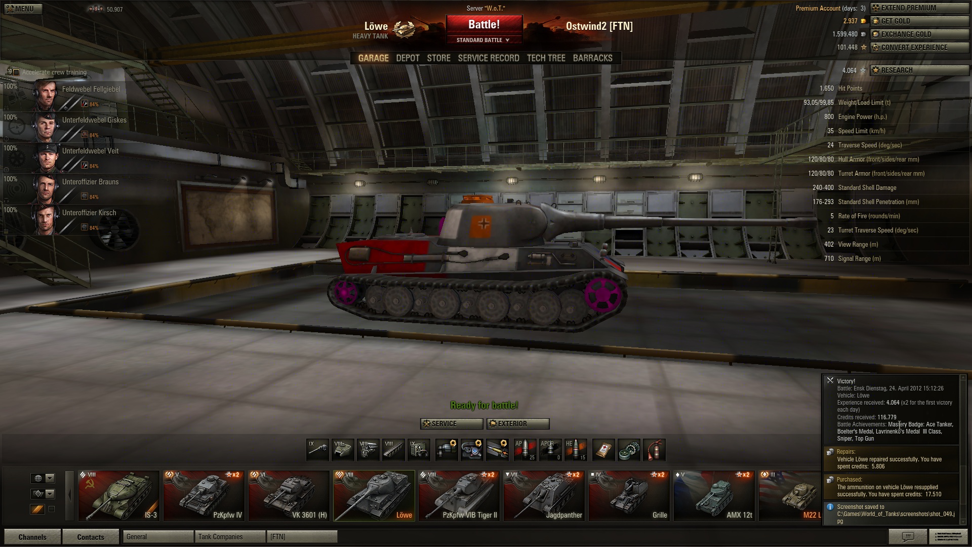 Geile Runde mitn E-50 und nem IS4 am Ende der Runde mit fast 60? km/h ins Heck reingerammt xD fast 400 Rammschaden.