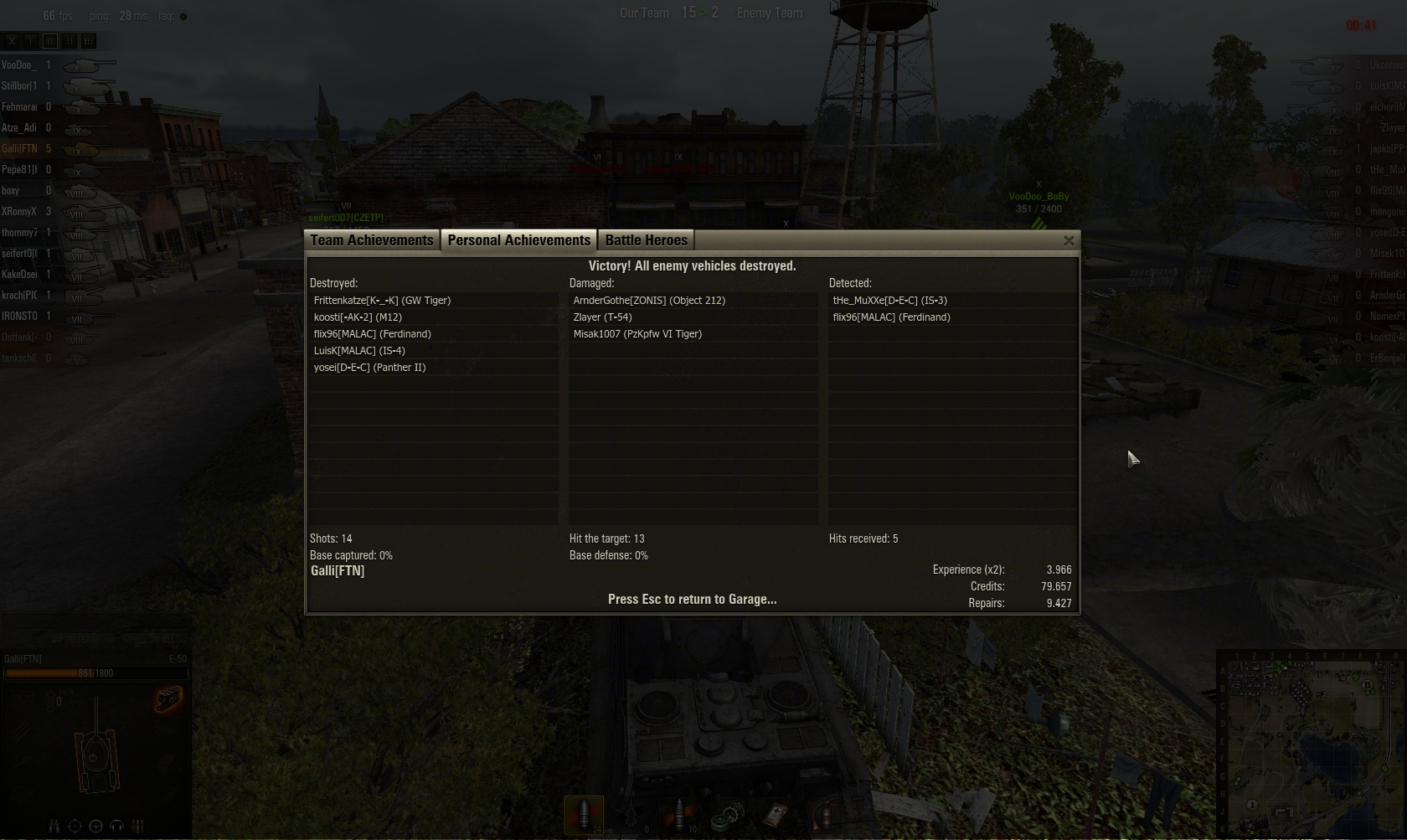 PantherII, Ferdinand mehrere Dachtreffer, mit T-54 im Nahkampf, M12 und GW-Tiger plattgemacht, Obj. 212 und Tiger damaged zuletzt IS4 fast totgerammt und gefinished, Video von der Runde hab ich mal angefügt.