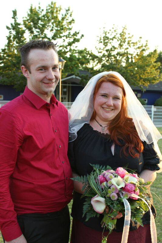 Hmnnnnoope, wir sind nicht verheiratet :P Ich hab nur den Brautstrauß gefangen und die Braut hat mir dann neben dem Strauß in die Hand auch noch den Schleier ins Gesicht gedrückt. Seht ihr die Angst in seinen Augen? :D