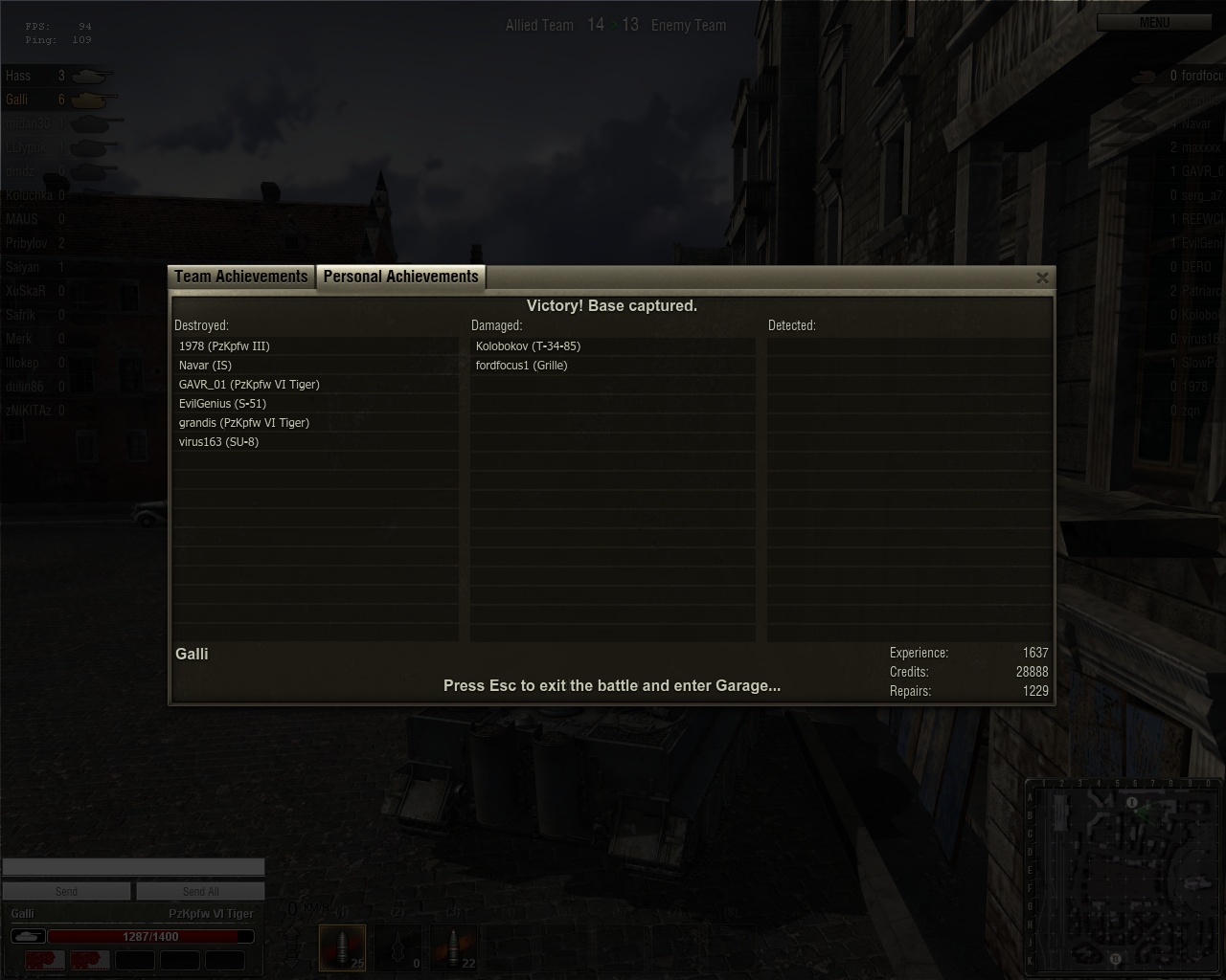 Ach wie ist das schön der neue Tank aber auch teuer in Muni und Repair man siehts an meiner Liquidität, gestern super Matches heute nur Shit. :D :roll: