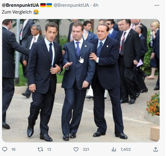 Indessen ist die Ukraine angeblich "on the roll". Bei Verbove an der Zaporizhia-Front ist man angeblich mit "hunderten Panzerfahrzeugen" durch die russischen Linien durch und von da sind es noch 50-60 Meilen bis zur Küste. Kadyrows TikTok-Soldaten haben bei Bachmut laut russischen Bloggern wohl in wenigen Tagen 700 Mann verloren und auch da ist die Ukraine wohl schon wieder in Außenbereichen der Stadt dabei, Fuß zu fassen. Das sind aber alles so Meldungen, bei denen man mal abwarten muss, was sich die Tage davon bewahrheitet.