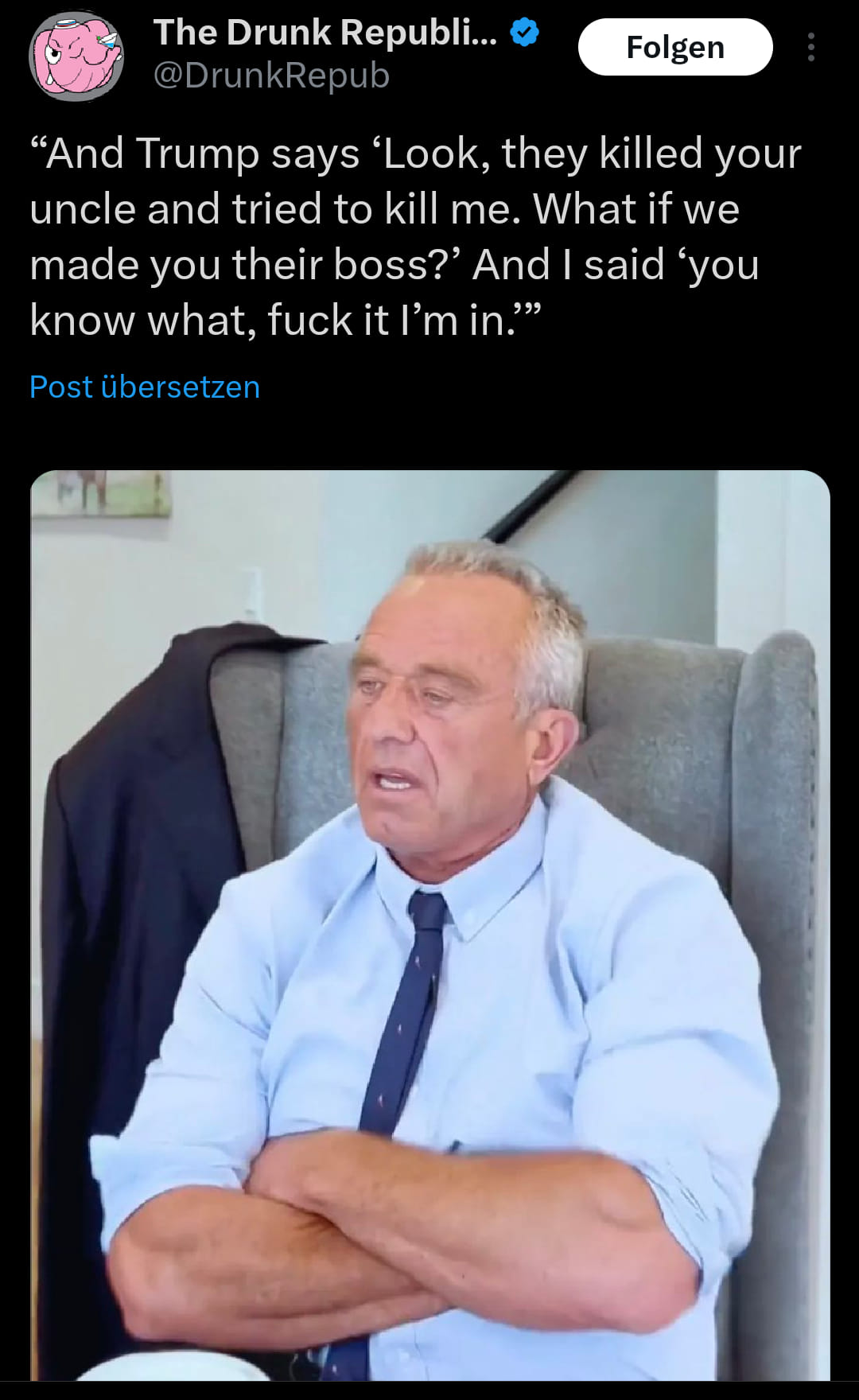Die Frage ist natürlich auch, ob das nicht schon von vorne herein ein abgekartertes Spiel zwischen Trump und RFK Jr. war. Und die Memes schreiben sich dann auch gleich von selbst: