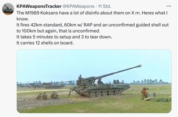 Die Russen haben neulich auch einen ganzen Eisenbahnzug mit M1989 Koksans SPGs aus Nordkorea quer durch Russland geschickt und die sind dann auch bald an der Front: