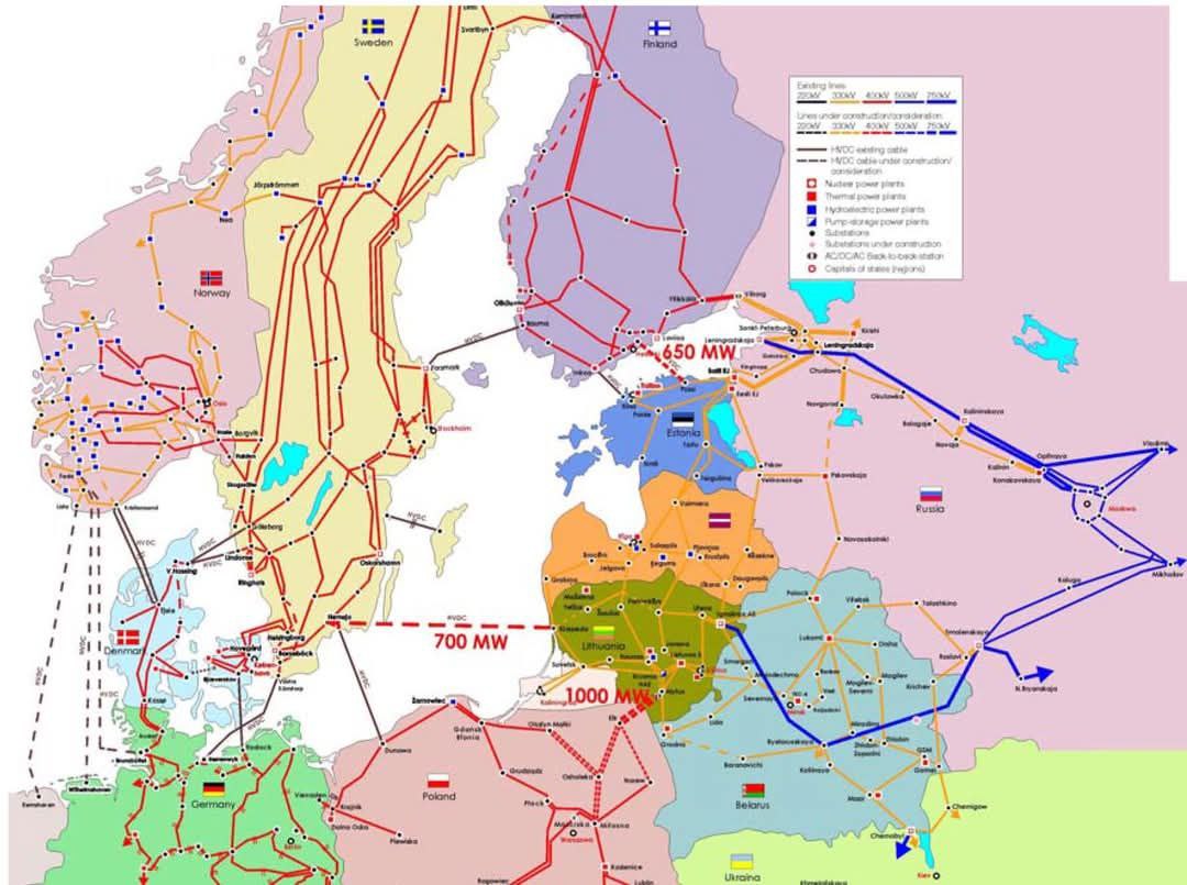 Zurückgehend auf Soviet-Zeiten hängen die Baltischen Staaten im BRELL-Stromnetz: Belarus, Russland, Estonia, Latvia und Litauen. Mit der Situation war man nach 1990 nie so ganz happy und hat dann eben mal nach anderen Anschlussmöglichkeiten geschaut. Es entstanden dann irgendwann die zwei Seekabel nach Finland und eine Anbindung nach Polen. Die Verbindung nach Finland hat kombiniert 1MW Maximaldurchsatz und die nun zerstörte EstLink 2 lieferte davon bis zu 650 MW maximal. Die Leitung aus Polen kann 1 MW. Die drei Baltischen Staaten hatten BRELL gekündigt sind dann ab Februar 2025 aus dem Russen-Netz raus.